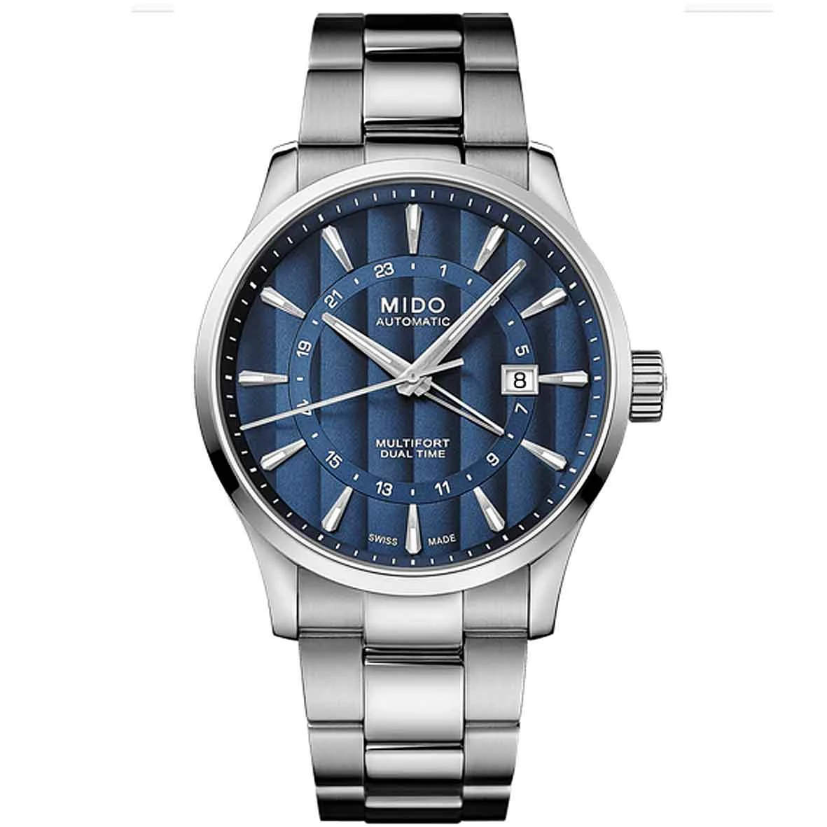 Equipée d’un mouvement exclusif au Swatch Group, la Multifort Dual Time GMT combine un mouvement automatique Calibre 80 et une fonction GMT.
