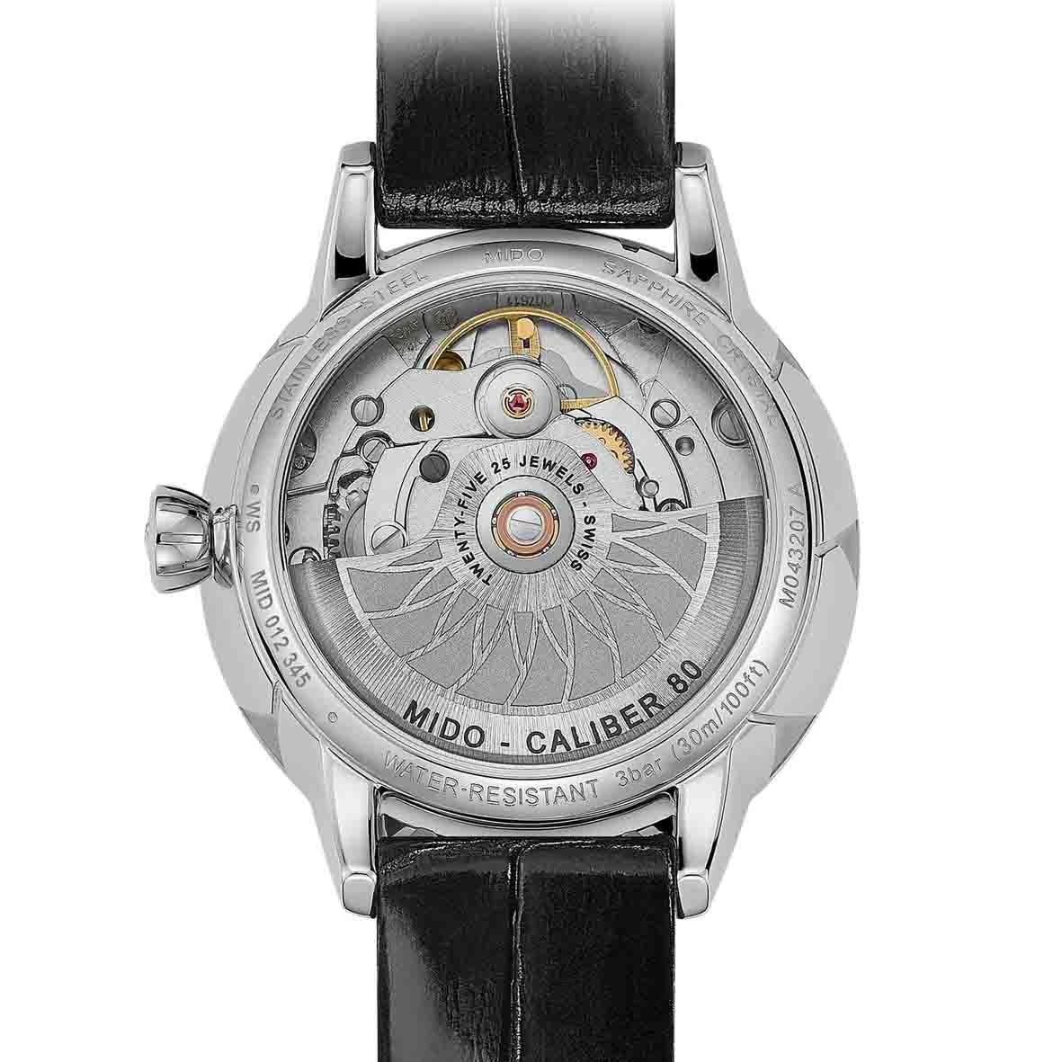 Le Calibre 80 de MIDO est un mouvement à remontage automatique nouvelle génération. Il offre jusqu’à 80 heures de réserve de marche, deux fois plus qu’un mouvement classique. Il est également disponible en version chronomètre, officiellement certifié par le COSC (Contrôle Officiel Suisse des Chronomètres) pour garantir sa précision supérieure.