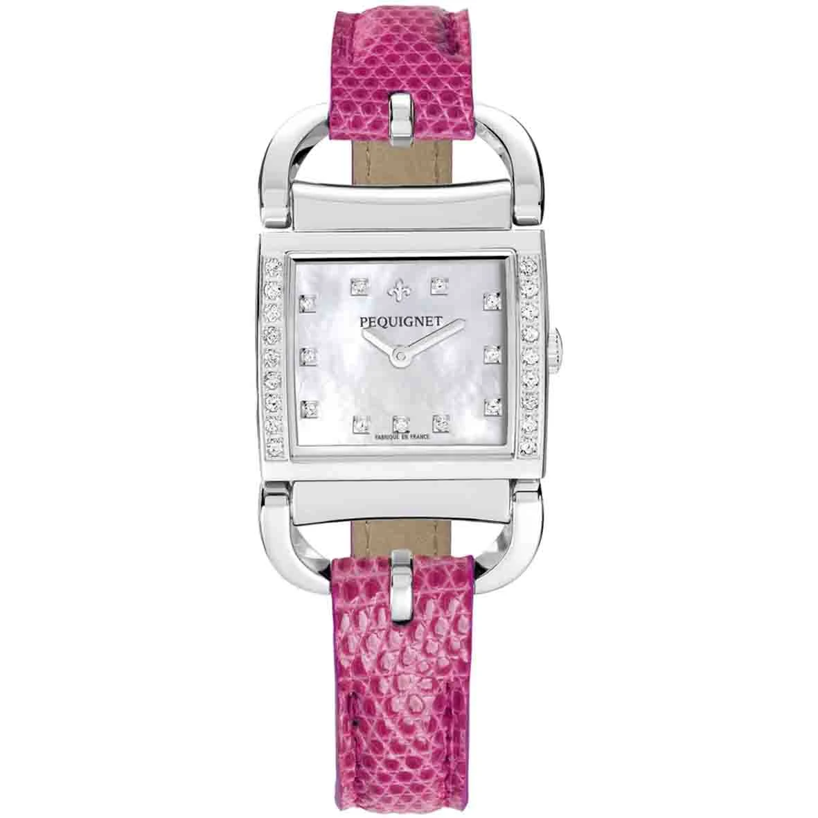 Ce modèle vintage tendance de la collection Equus Attelage se pare d’un boîtier plaqué or jaune serti de véritables diamants.
