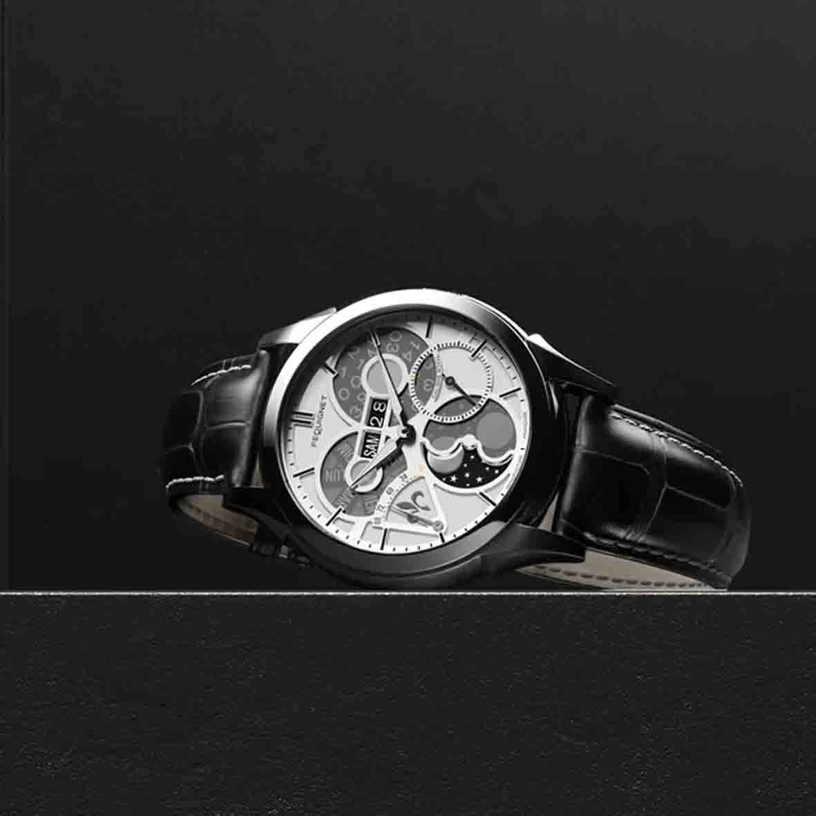 Cette montre incarne l’harmonie subtile entre le noir et le blanc, et elle est dotée du célèbre Calibre Royal® français, témoignant du savoir-faire exceptionnel de la Manufacture Pequignet.